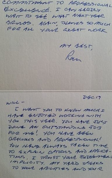“Will, I want you to know how much I have enjoyed working with you this year. You have just done an outstanding job for me! You have been gracious and professional! You have always taken time to explain options and applications. I trust your judgement implicitly. My yard speaks to your abilities and your commitment to professional excellence. I can hardly wait ti see what next year brings. Again, thanks so much for all your best work.”